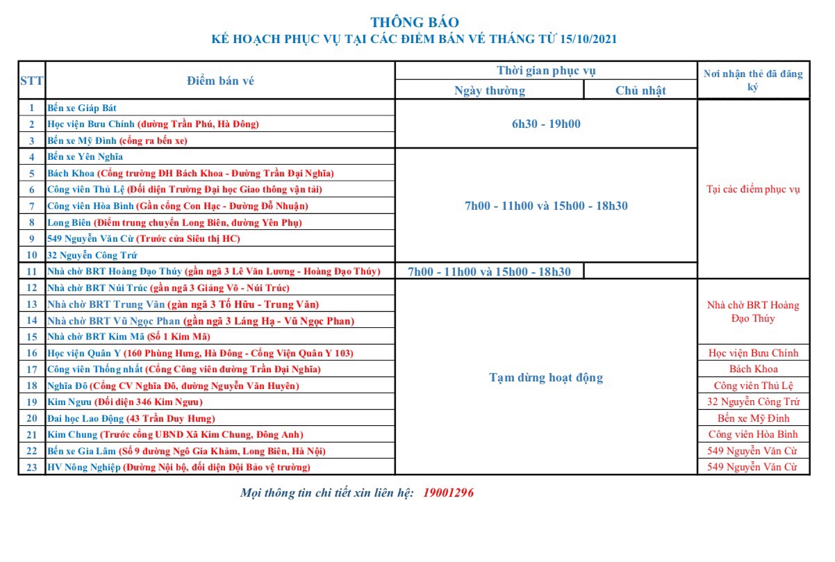 Các Điểm Làm Vé Xe Buýt Tháng Ở Hà Nội
