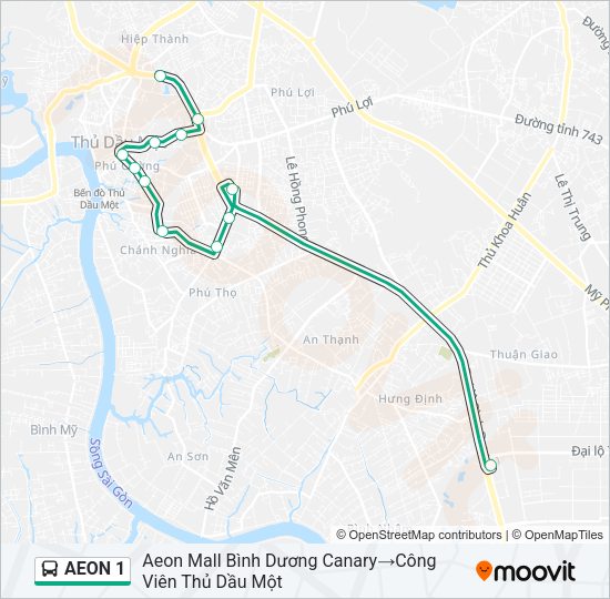 Nếu bạn muốn đến Aeon Mall Bình Dương bằng xe buýt, có một số tuyến rất tiện lợi để lựa chọn. Đặc biệt, tuyến AEON 1 là một trong những tuyến chính, xuất phát từ Công Viên Thủ Dầu Một và kết thúc ngay tại Aeon Mall Bình Dương Canary với khoảng 12 điểm dừng trên đường đi. Tuyến này đi qua nhiều địa điểm quen thuộc như Ngã Ba Đại Lộ Bình Dương – Huỳnh Văn Lũy, Bệnh Viện Y Học Cổ Truyền, Chùa Bà Thiên Hậu và Bến Xe Khách Tỉnh Bình Dương, rất thuận tiện cho người dân trong khu vực.