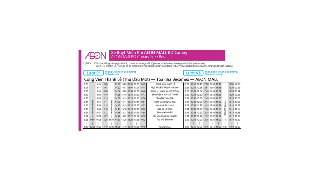 Lịch Xe Buýt Becamex Tokyu Đi Aeon
