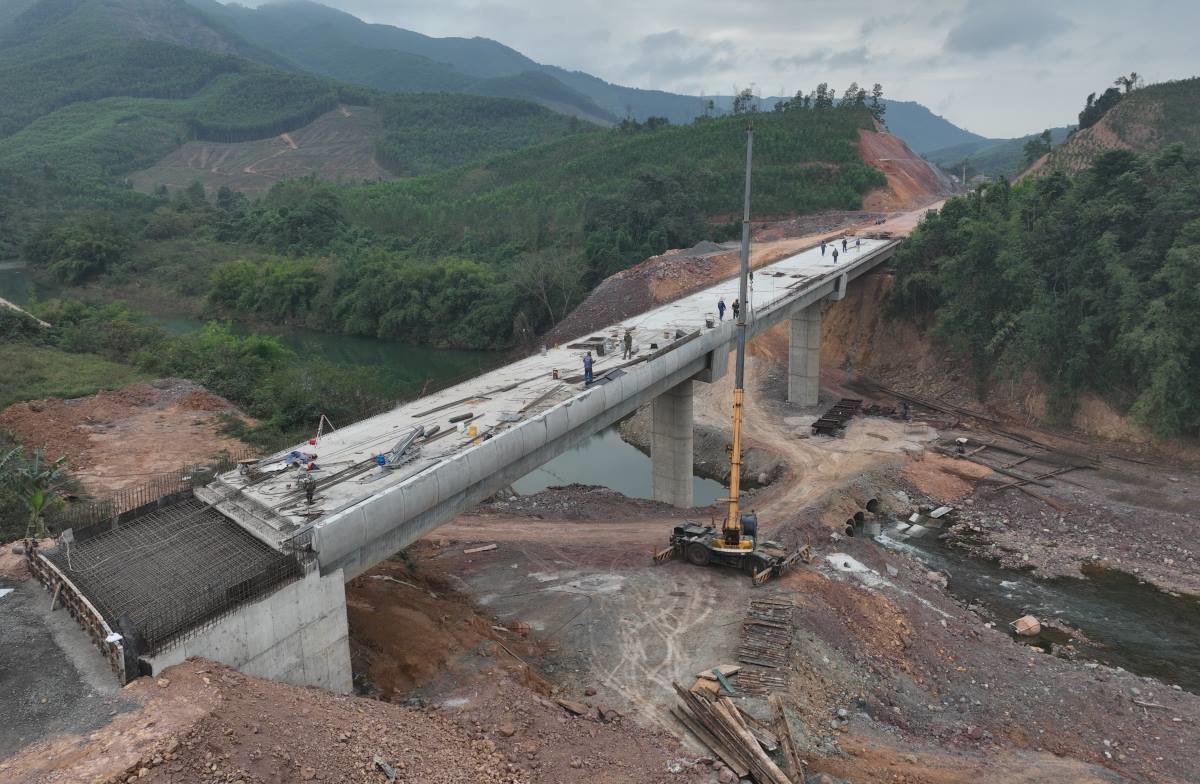 Tuyến cao tốc này dài hơn 90 km, đi qua địa hình phức tạp nên công tác thi công đòi hỏi nhiều nỗ lực. Hơn 3.200 kỹ sư và công nhân cùng 1.500 máy móc thiết bị đang ngày đêm làm việc, vượt qua mọi khó khăn về thời tiết để đẩy nhanh tiến độ. Thủ tướng Phạm Minh Chính đã nhiều lần trực tiếp khảo sát và động viên các lực lượng thi công, thể hiện sự quan tâm đặc biệt của Chính phủ với dự án này.