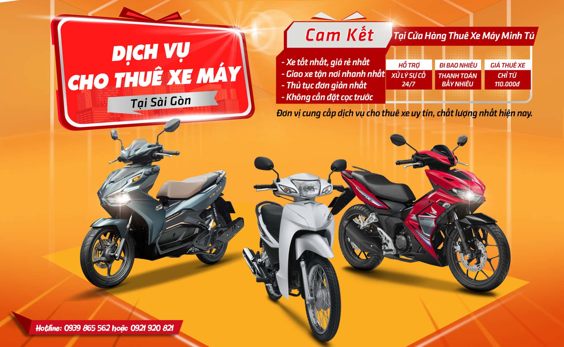 Xe máy cho thuê tiện lợi tự lái khám phá thành phố
