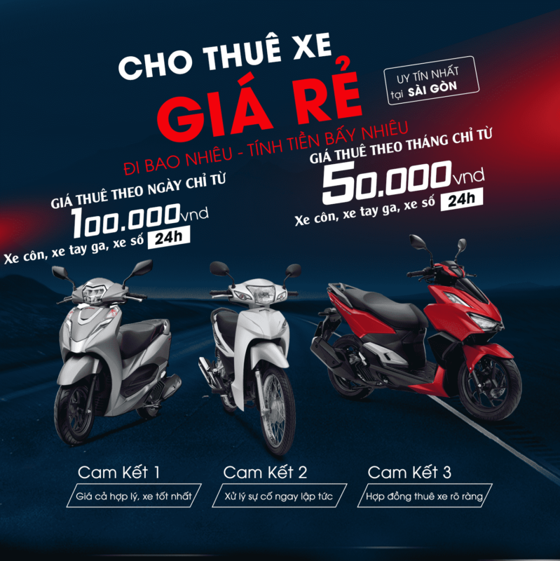 Dịch vụ thuê xe máy tại TPHCM ngày càng trở nên phổ biến và tiện lợi, đặc biệt với những ai muốn tự do khám phá thành phố năng động này. Khi thuê xe máy, bạn có thể dễ dàng di chuyển qua các con đường nhỏ, tránh được tình trạng kẹt xe và chủ động hơn trong lịch trình của mình. Giá thuê xe cũng rất phải chăng, dao động từ khoảng 100.000 đến 200.000 đồng mỗi ngày tùy loại xe, như Honda Wave, Yamaha Sirius hay AirBlade, kèm theo mũ bảo hiểm và áo mưa miễn phí.